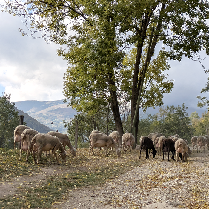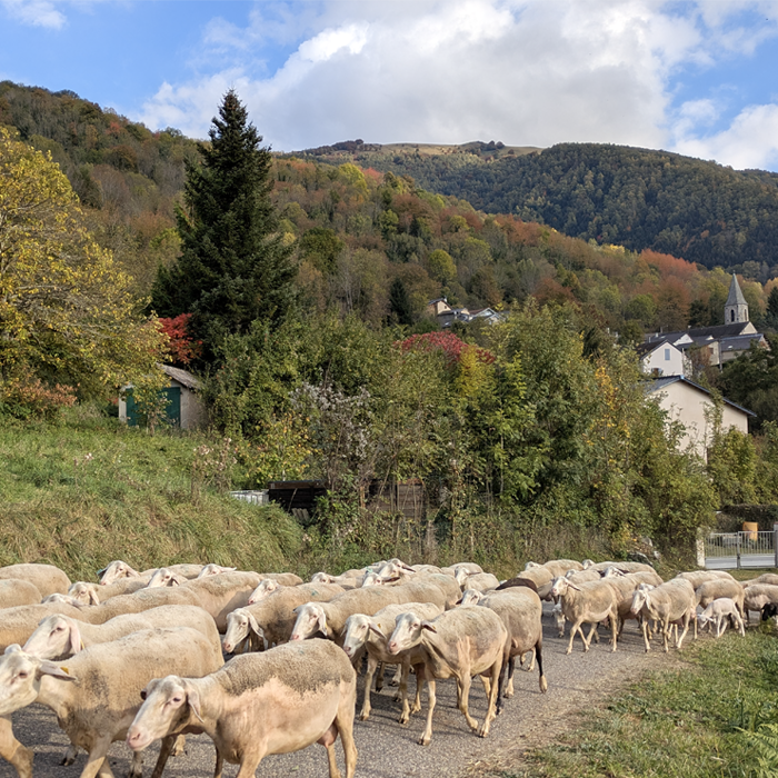 Notre ferme se situe en Haute-Ariège, dans le petit village de Gestiès. Nous élevons ici deux troupeaux qui produisent lait et agneaux. Loïc, ancien berger et saisonnier de la vallée, travaille avec la race de brebis locale : La Tarasconnaise, pour la valorisation de la viande d’agneau et de brebis. Claire, issue d’une formation dans l’image, a pris part au projet avec un troupeau laitier de brebis Lacaune pour la fabrication de tomme au lait cru.